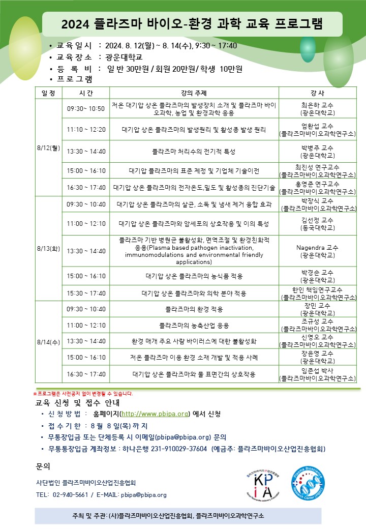 2024 플라즈마 바이오-환경 과학 교육 프로그램 안내
